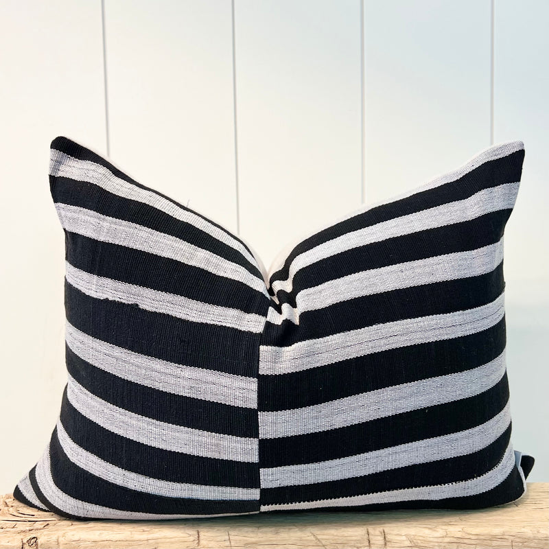 "Viceroy" Black and White Offset Striped Pillow